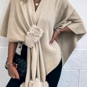 Neck Pom-Pom Trim Poncho