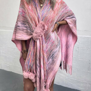 Neck Pom-Pom Trim Poncho