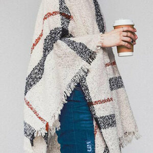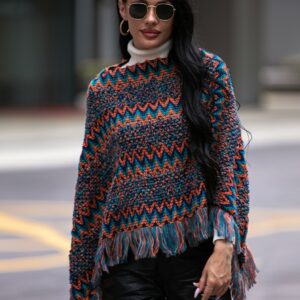 Color Block Fringe Detail Poncho